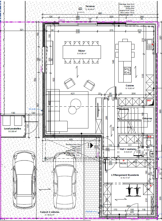 Développant environ 200 m² habitables, cette habitation se compose de 4 chambres, dont une suite parentale avec salle de douche privative, une salle de bains familiale, 2 WC séparés, un vaste espace de vie lumineux avec séjour et cuisine ouverte donnant sur la terrasse et le jardin aménagé, terrasse, ainsi qu’un carport 2 voitures, une buanderie et remises complémentaires.